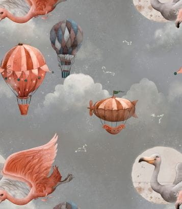 Tapeta jak ze snu ze wzorem magiczne balony, flamingi i księżyce