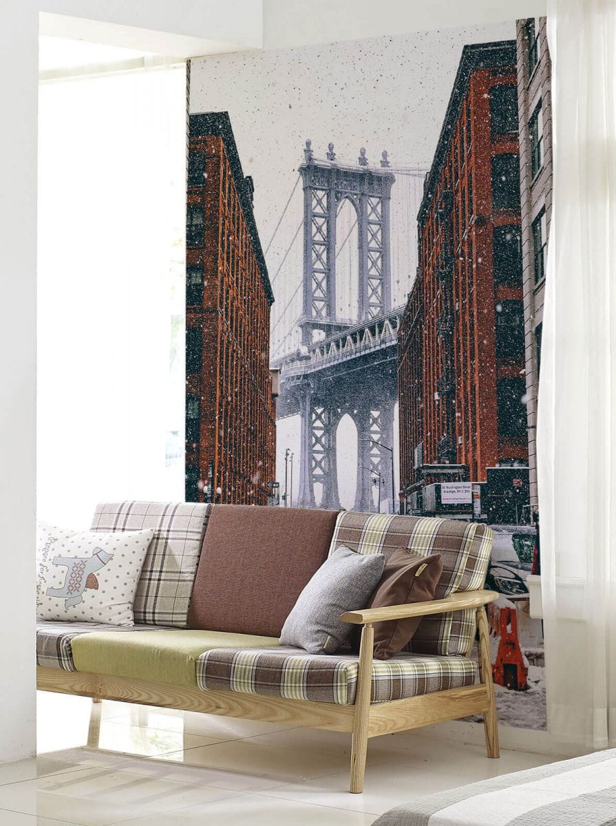 Kolorowa fototapeta ze zdjęciem Brooklynu zimową porą.