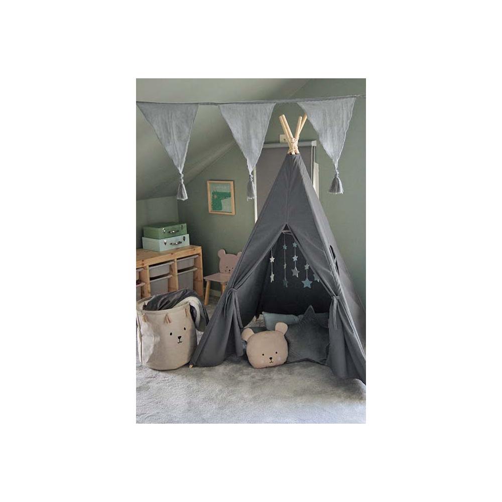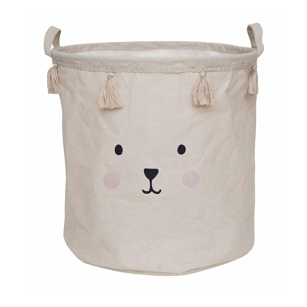 Stylowy, beżowy z uroczymi frędzlami, i wizerunkiem misia kosz na zabawki i inne skarby Twojego malucha. Niezwykle pojemny i funkcjonalny, będzie nieodzownym elementem dekoracyjnym w pokoju dziecięcym -dzięki uchwytom jest bardzo praktyczny, by przenieść ze sobą swoje skarby. Kosz na zabawki jest świetnym pomysłem, by utrzymać porządek by pokoju i posegregować zabawki oraz stworzyć stylowe wnętrze w skandynawskim stylu.