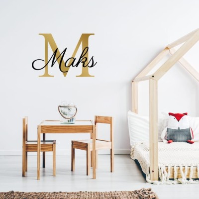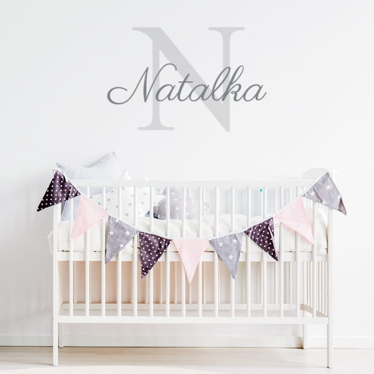 Śliczna naklejka na ścianę do pokoju dziecięcego Imie dziecka i inicjał