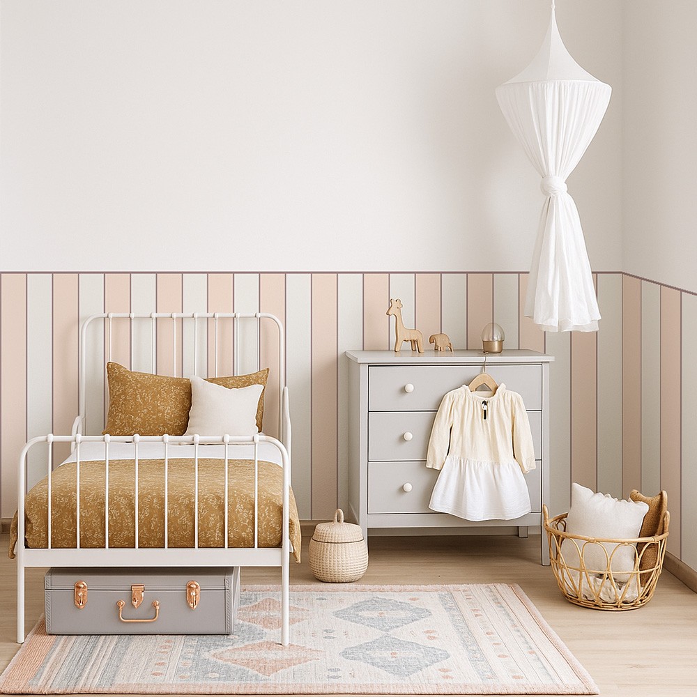 Wykorzystaj samoprzylepną lamperię do pokoju dziecka. Łatwa w aplikacji, trwała i bezpieczna dla dzieci. Dodaj kolorów i wyjątkowego charakteru do wnętrza, chroniąc jednocześnie ściany przed zabrudzeniami. Idealna do każdej dziecięcej przestrzeni!