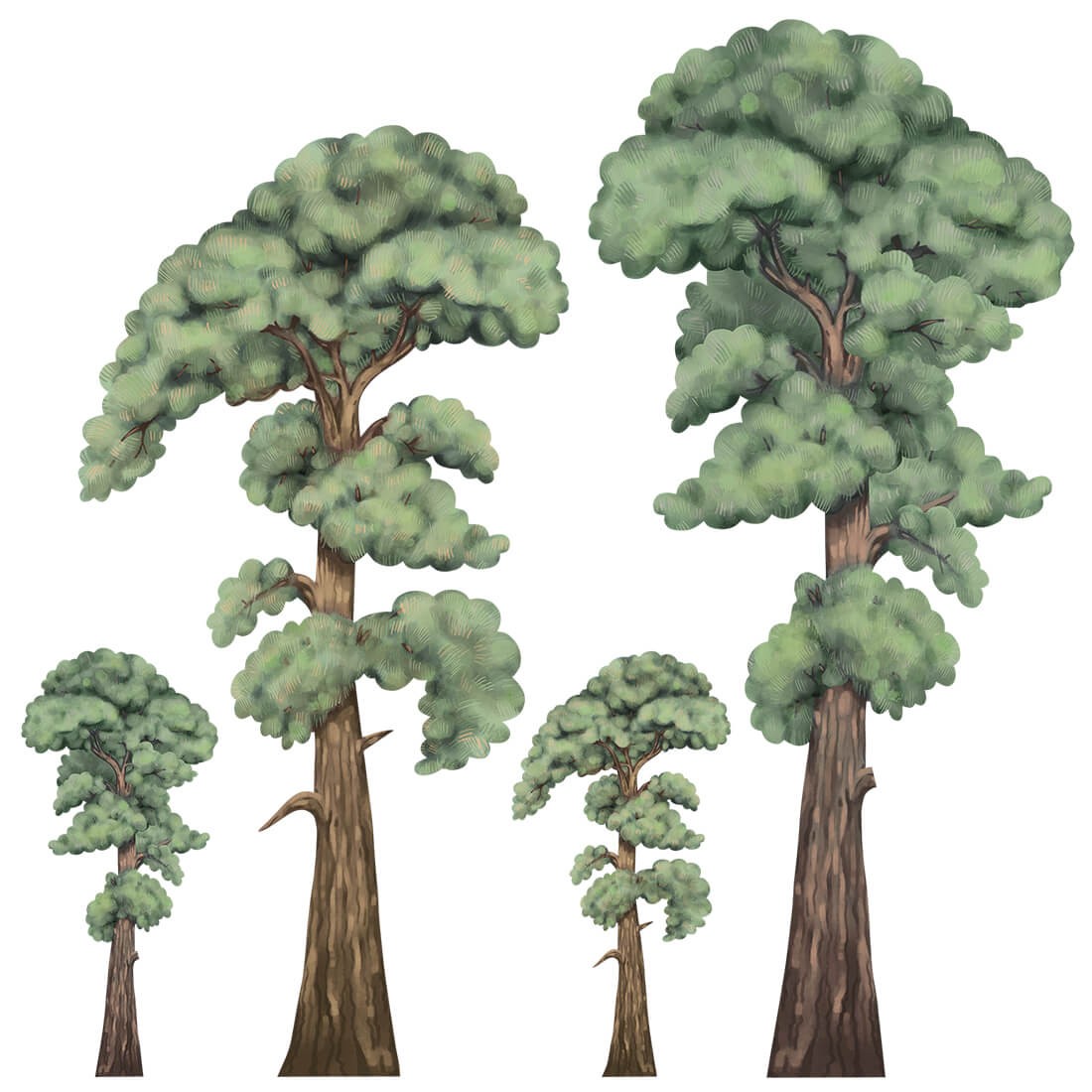 W skład zestawu wchodzą: dwa duże drzewa, dwa małe drzewa.
