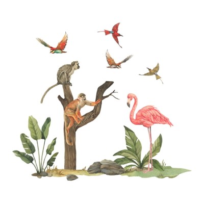 Naklejka na ścianę Flaming, małpy i ptaki Safari L