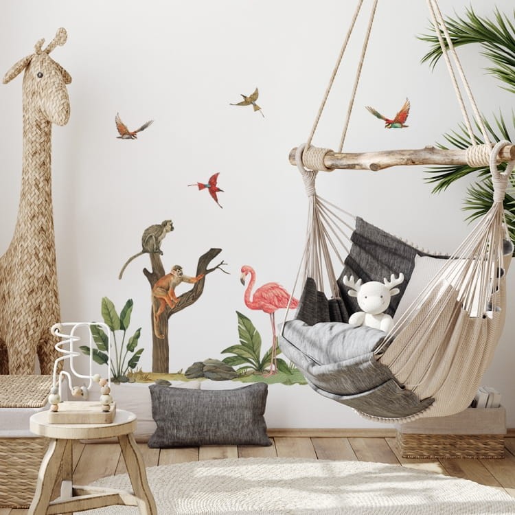 Połącz naklejki z naszymi propozycjami plakatów leśnych, by uzyskać pełną aranżację pokoju safari.