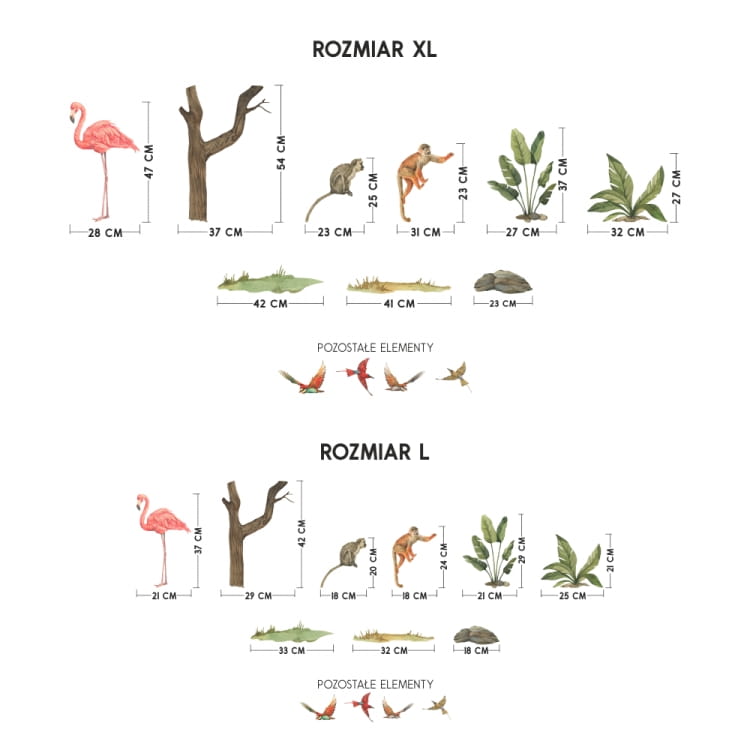 - Naklejka rośliny Safari wycięta jest po obrysie,