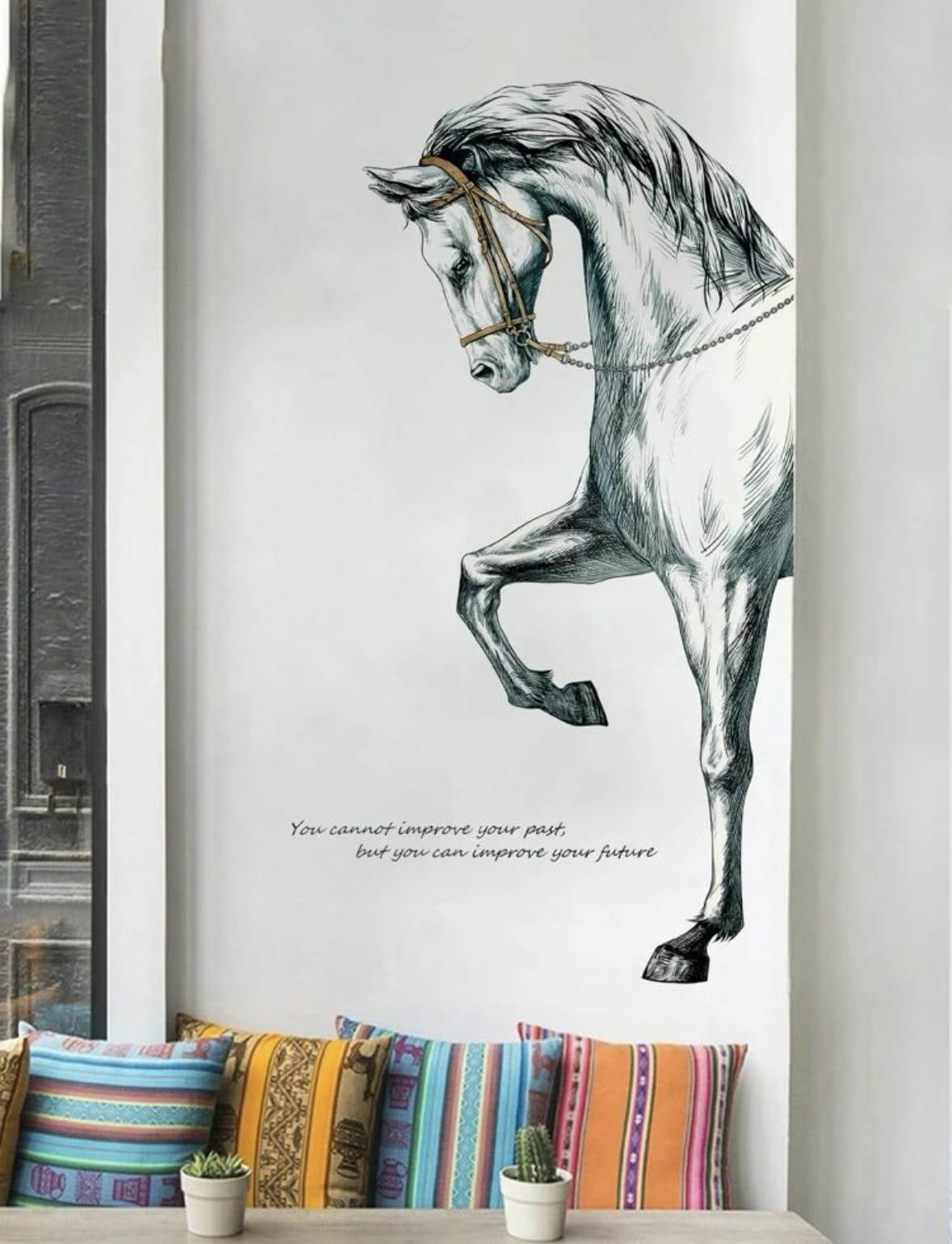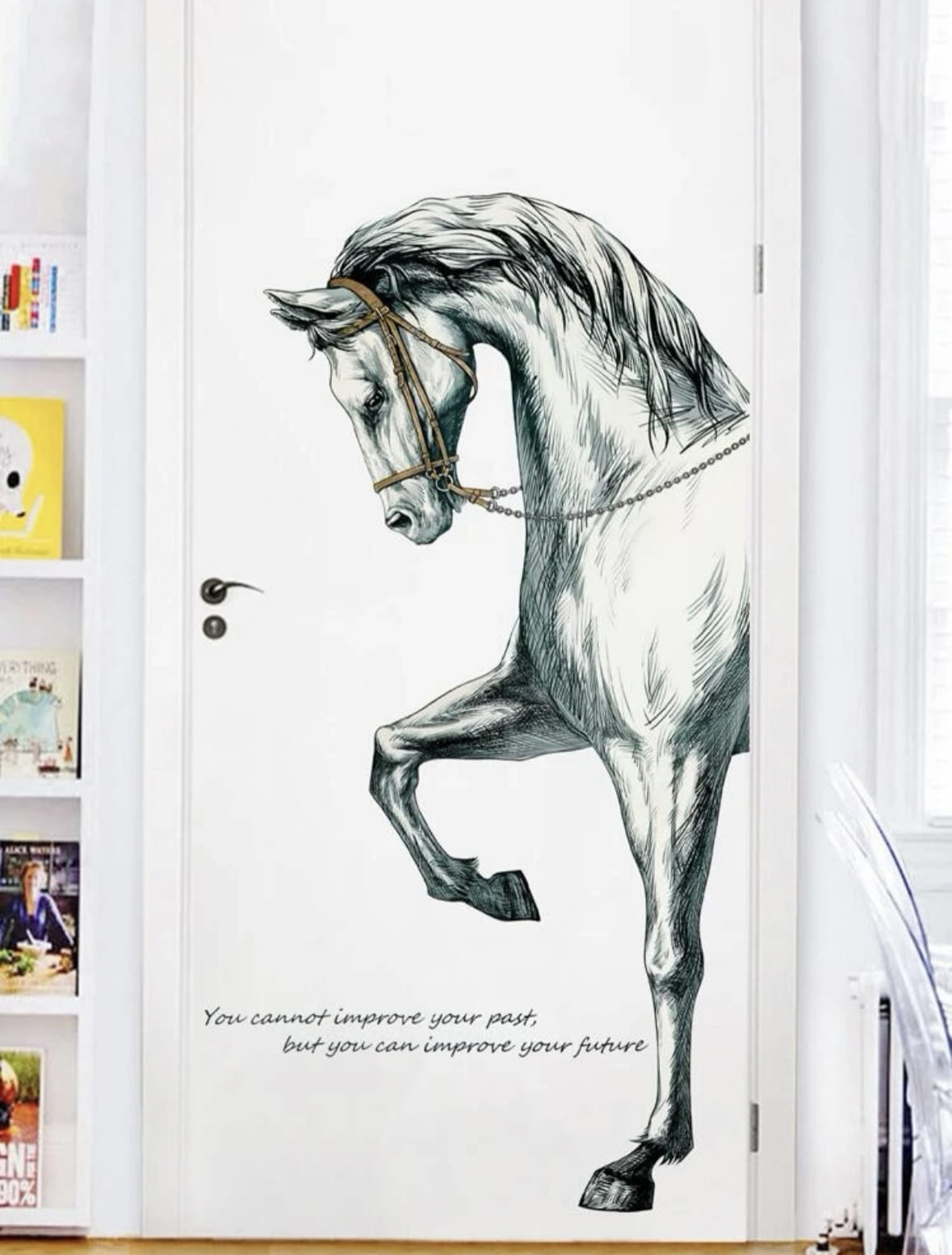 Piękna kreatywna naklejka na ścianę z białym koniem