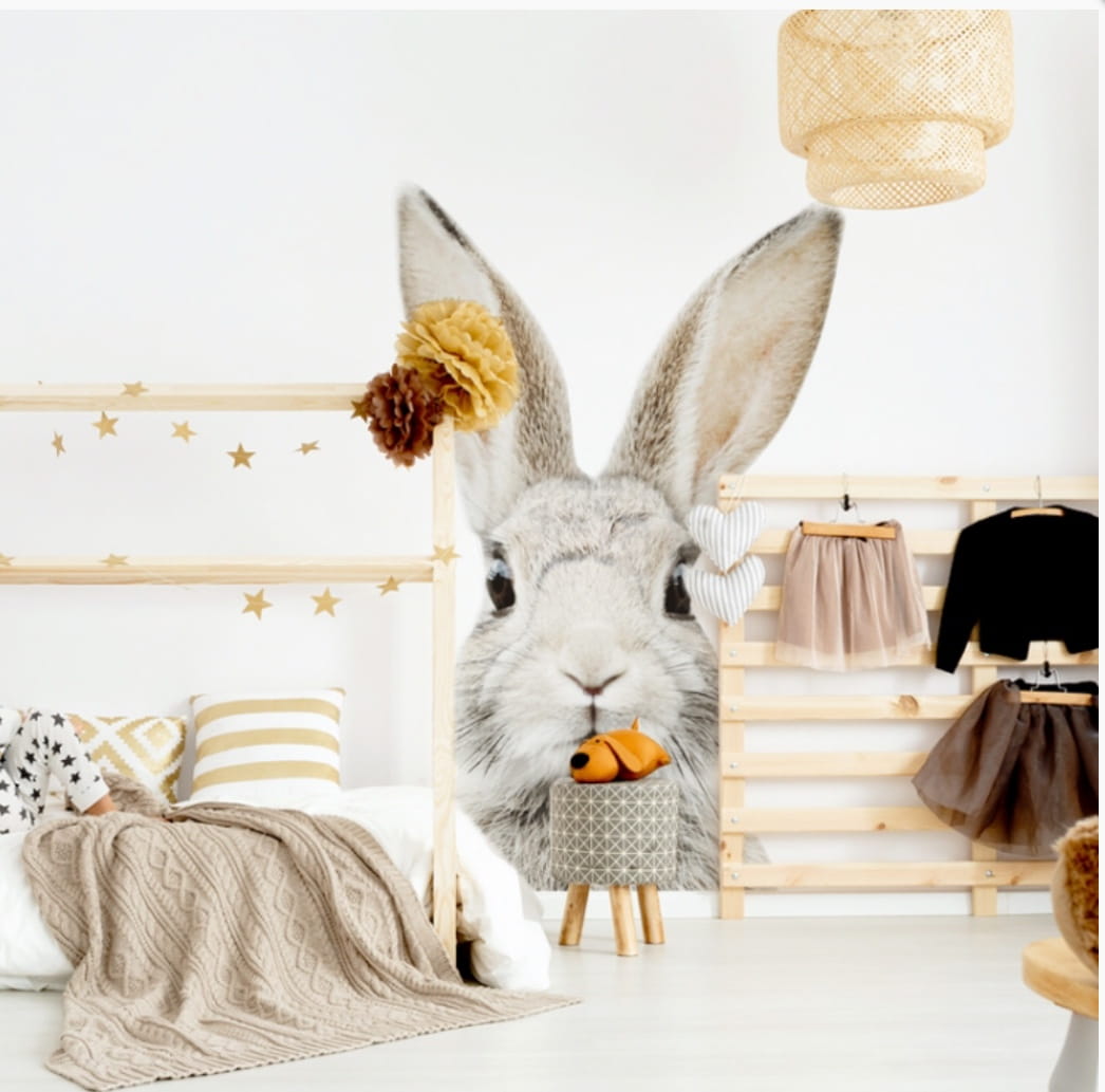 Kolorowa naklejka ma ścianę z królikiem całkowicie odmieni wnętrze pokoju Twojego dziecka.