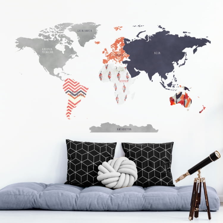 Naklejka z mapą stanowi piękną ozdobę pokoju dziecka oraz pełni funkcję edukacyjną