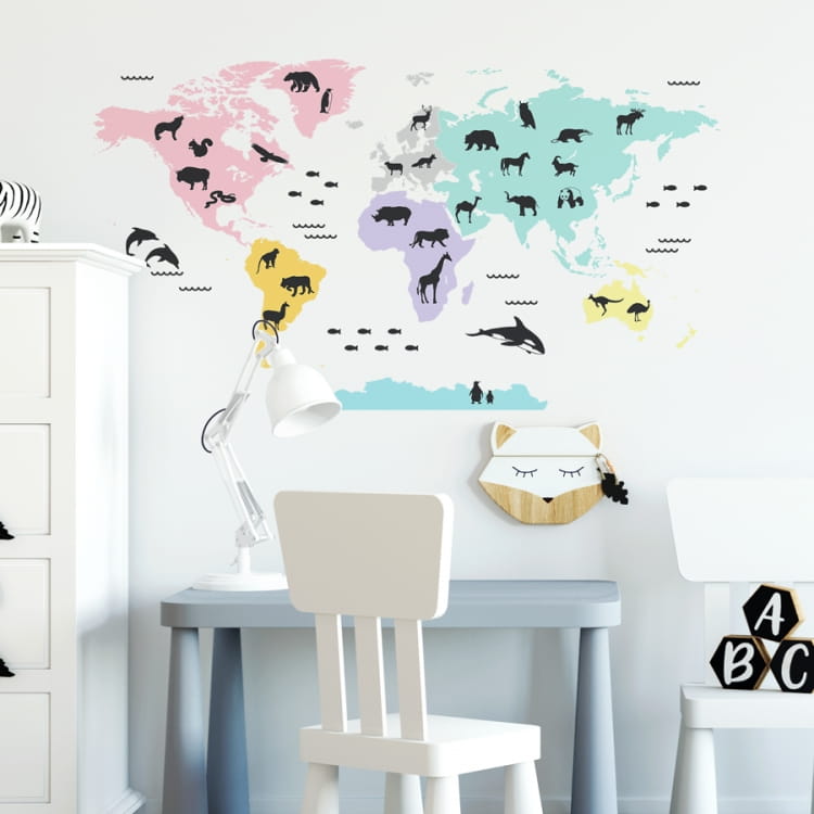 Naklejka na ścianę Mapa Świata pastelowa