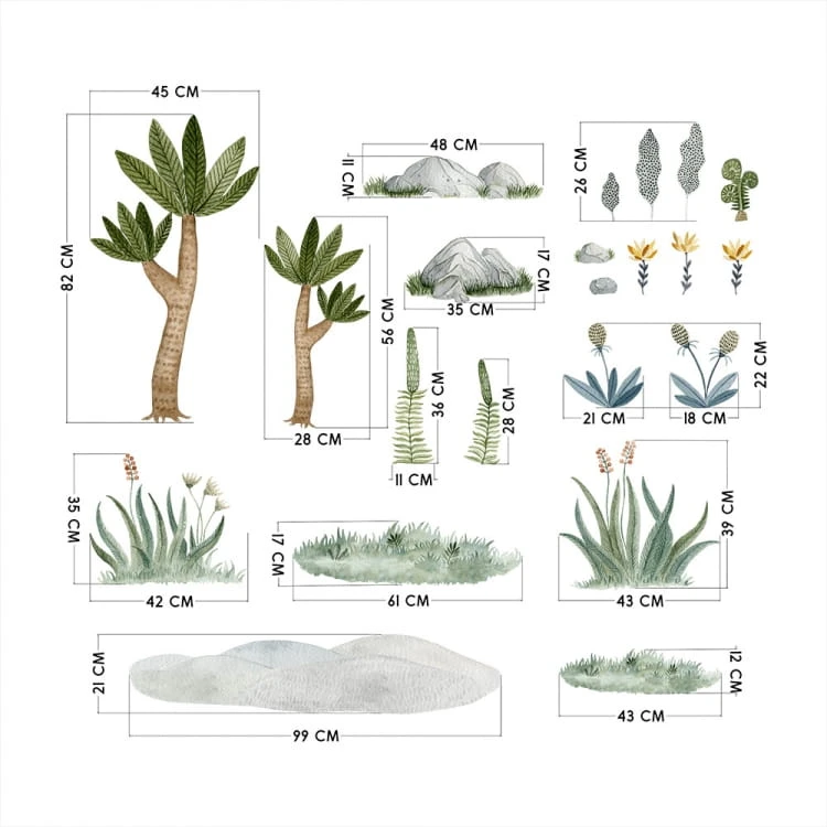 Zestaw zawiera drzewka, trawy, kwiaty, skały, liście - jednym słowem wszystko, czego dinozaur zapragnie. :)
