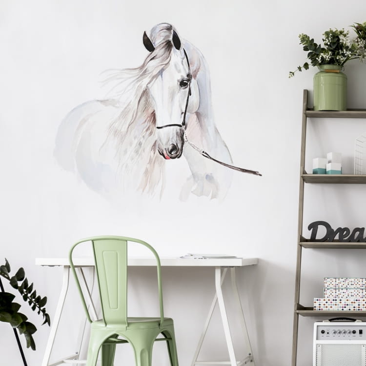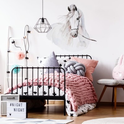 Piękna kreatywna naklejka na ścianę z białym koniem