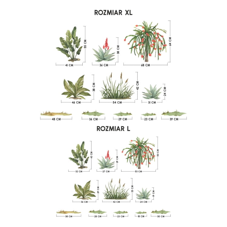- Naklejka rośliny Safari wycięta jest po obrysie,