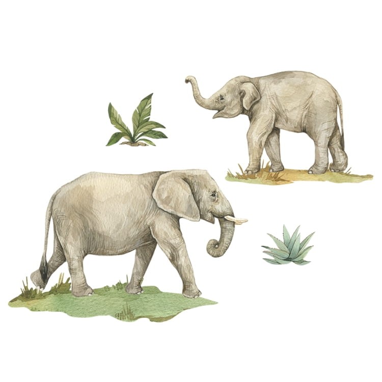 Naklejka na ścianę zwierzątka Słonie Safari XL
