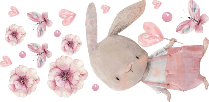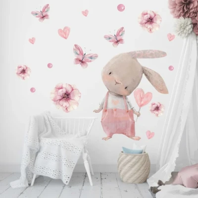 Naklejka ścienna dla dzieci – różowy uroczy króliczek