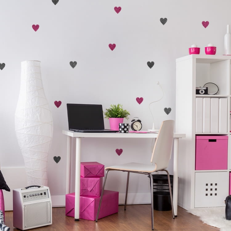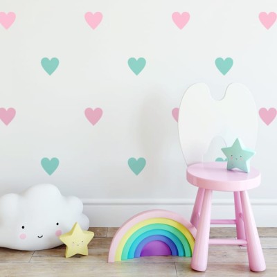 Naklejki w kształcie serduszek to świetny pomysł na dekoracje pokoju dziecięcego.