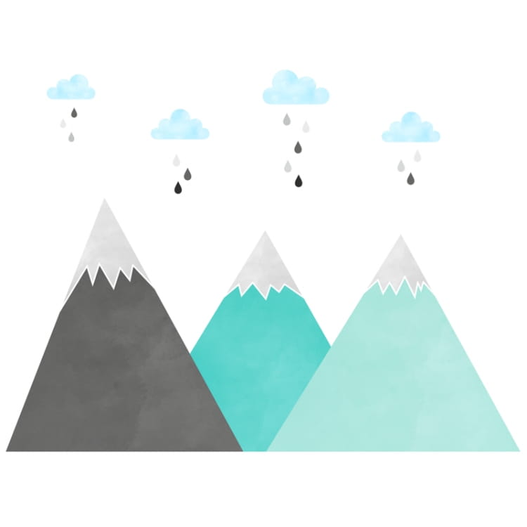Błękitne i szare góry oraz chmurki będą idealne do skandynawskiego wystroju wnętrza.