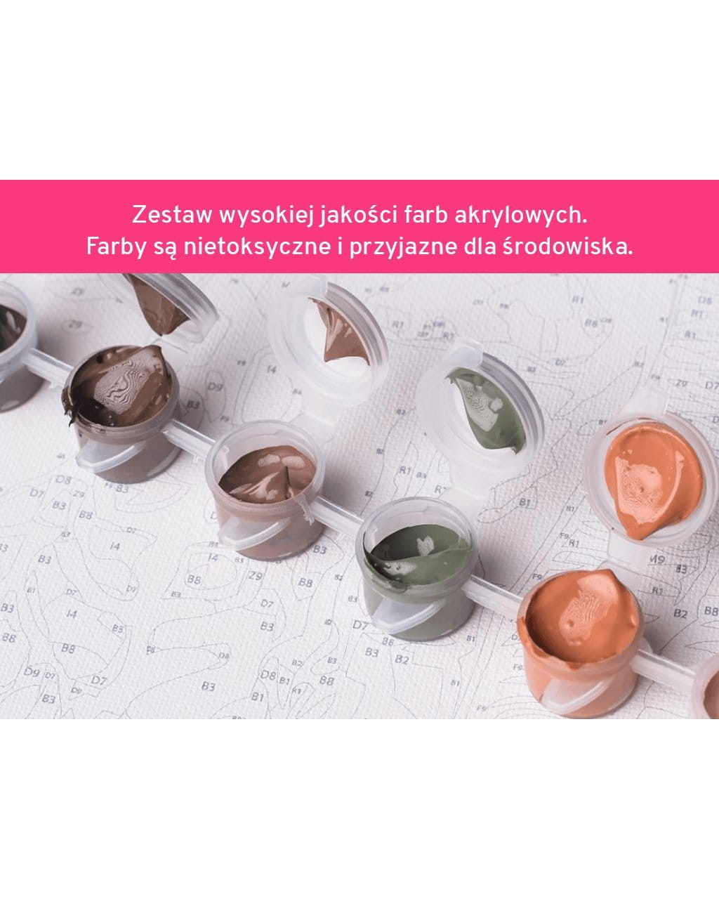 W każdym zestawie znajdziesz wszystko, czego potrzebujesz do namalowania obrazu.