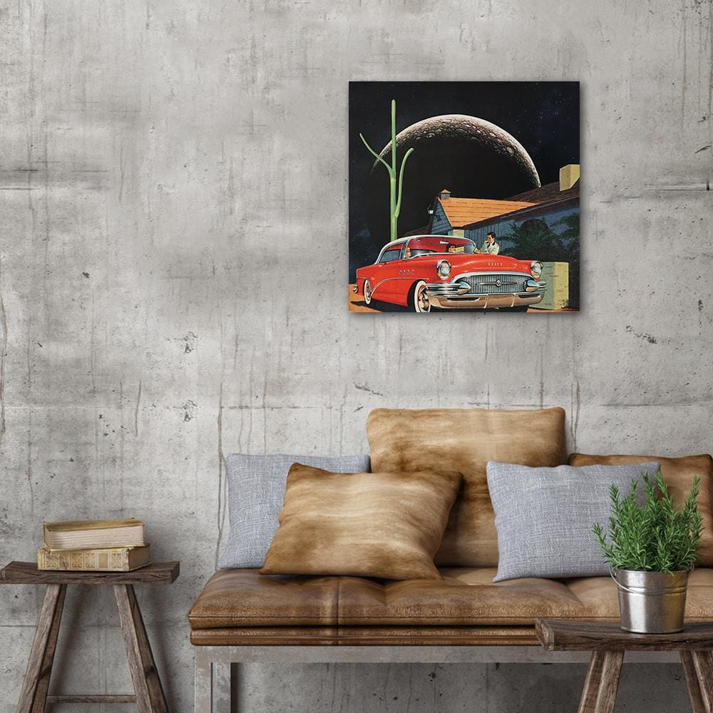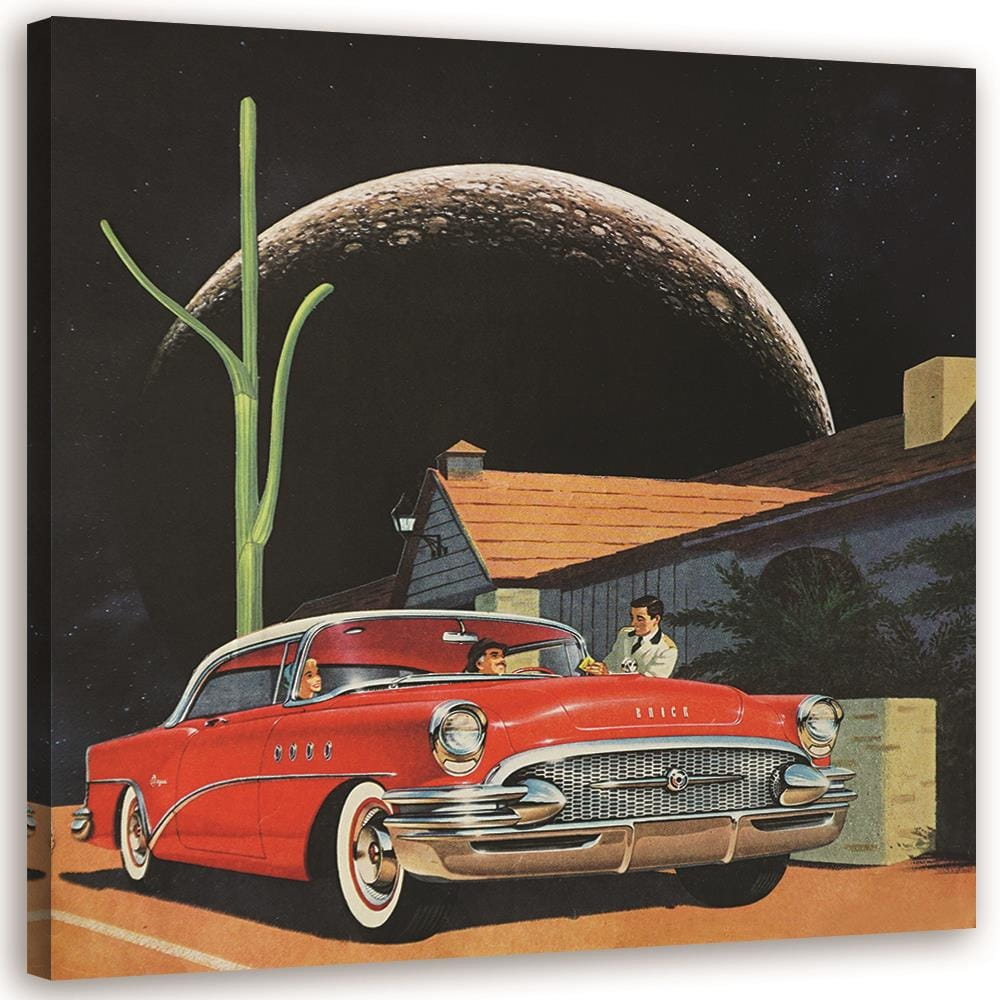 Nowoczesny obraz na ścianę - Czerwony samochód i księżyc - nada charakter Twojemu wnętrzu.