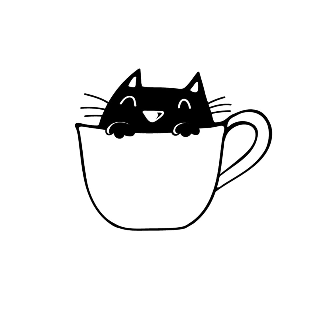 Obrazek kot w kubku jest częścią kolekcji obrazków kwadratowych idealnych do pokoju dziecięcego.