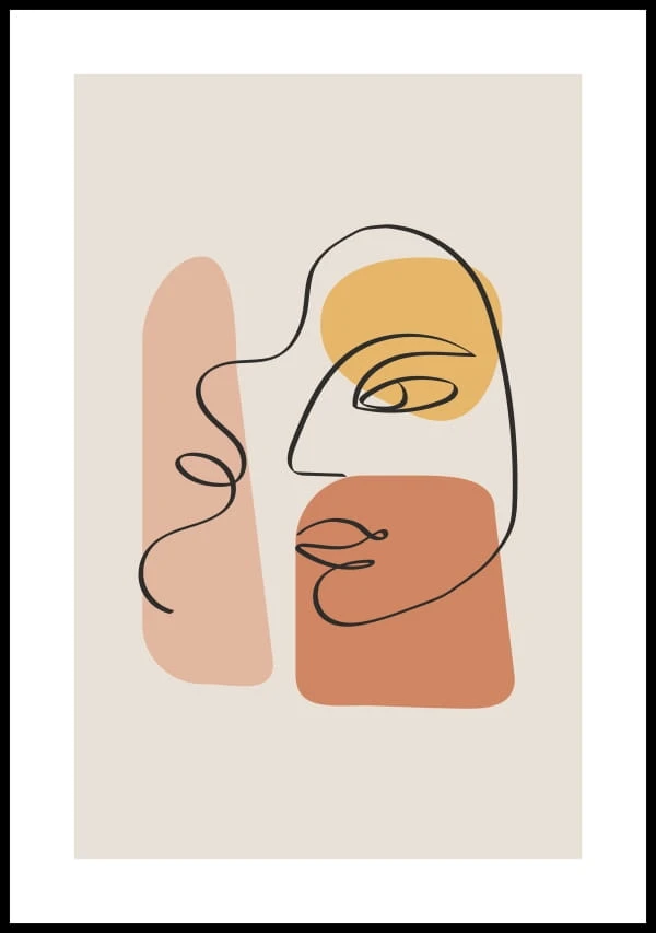 Delikatny beżowy graficzny plakat w stylu line art.