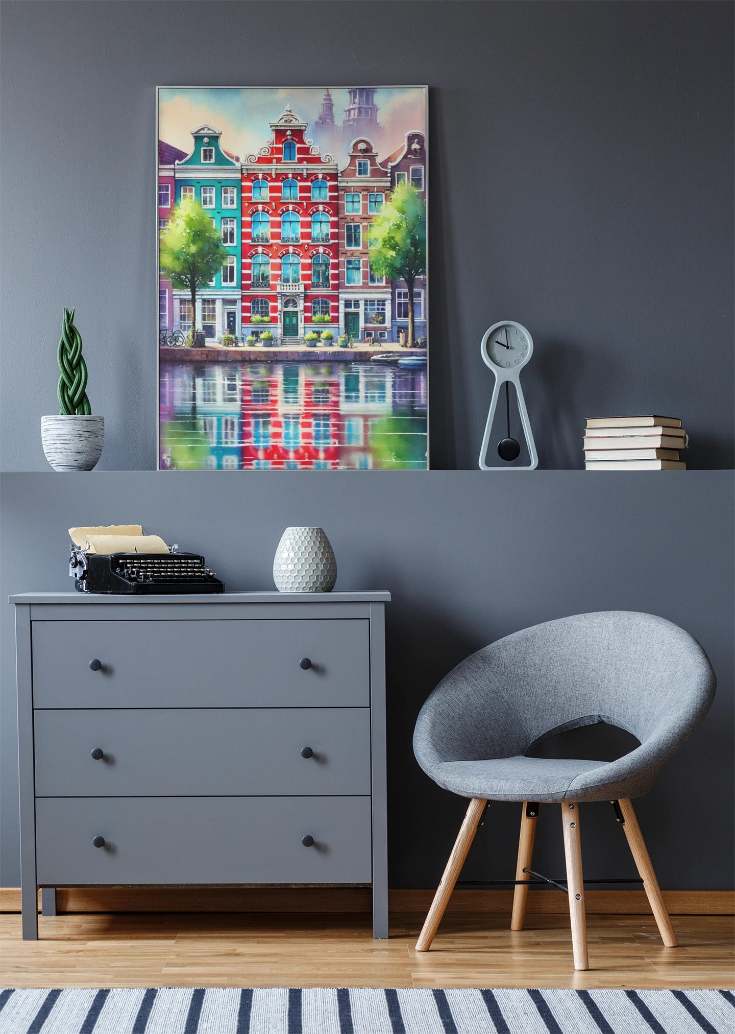 Amsterdam, miasto kanałów i eleganckiej architektury, gdzie każdy zakątek przyciąga wzrok swoim niepowtarzalnym urokiem i atmosferą swobodnej kreatywności. Nasz najnowszy plakat przenosi Cię w podróż po malowniczych uliczkach tego magicznego miasta, zachęcając do odkrycia inspirującego designu i stylu z 4rooms.