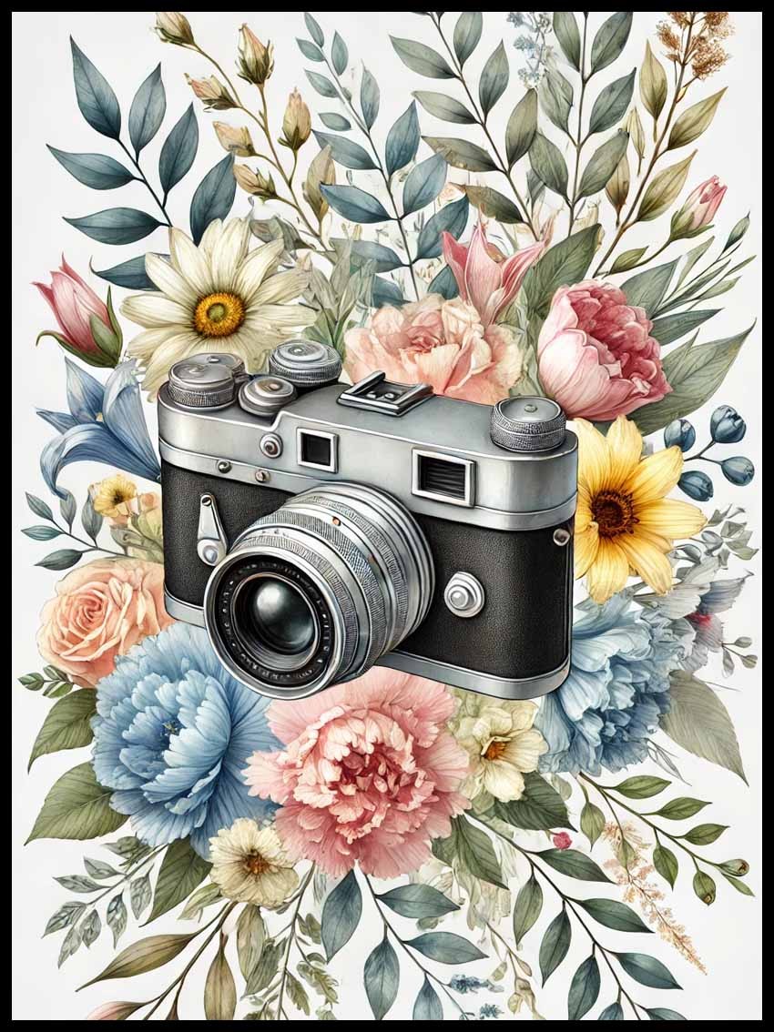 Plakat „Aparat w kwiatach” – uchwyć piękno chwil