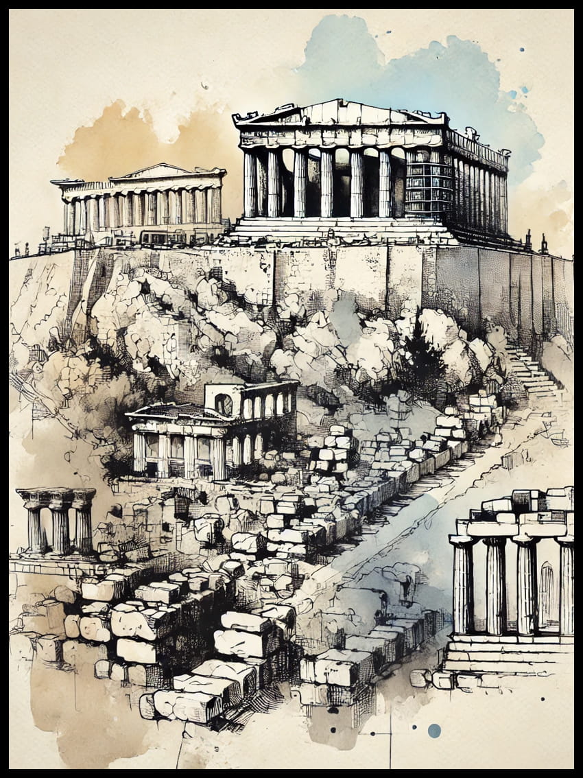 Plakat z Akropolem to idealny akcent dla miłośników podróży, historii i ponadczasowej sztuki, który wprowadzi do Twojego domu odrobinę śródziemnomorskiego słońca i harmonii antycznej architektury.