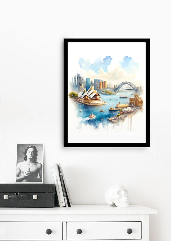 "Sydney Skyline" – Akwarelowy Plakat Artystyczny
