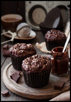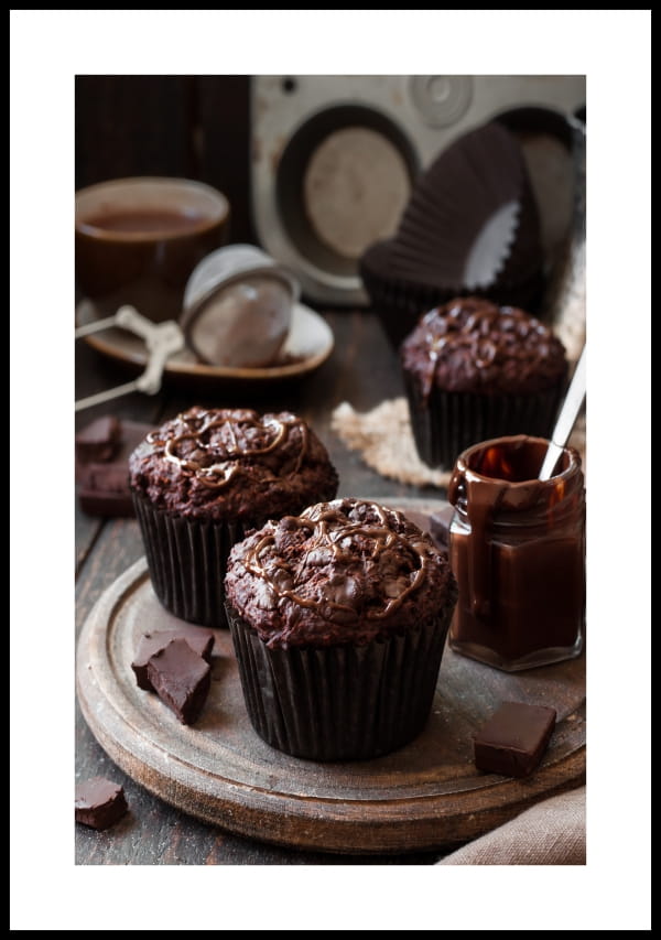 Zdjęcie smakowitych babeczek czekoladowych jako plakat do dekoracji kuchni i jadalni.