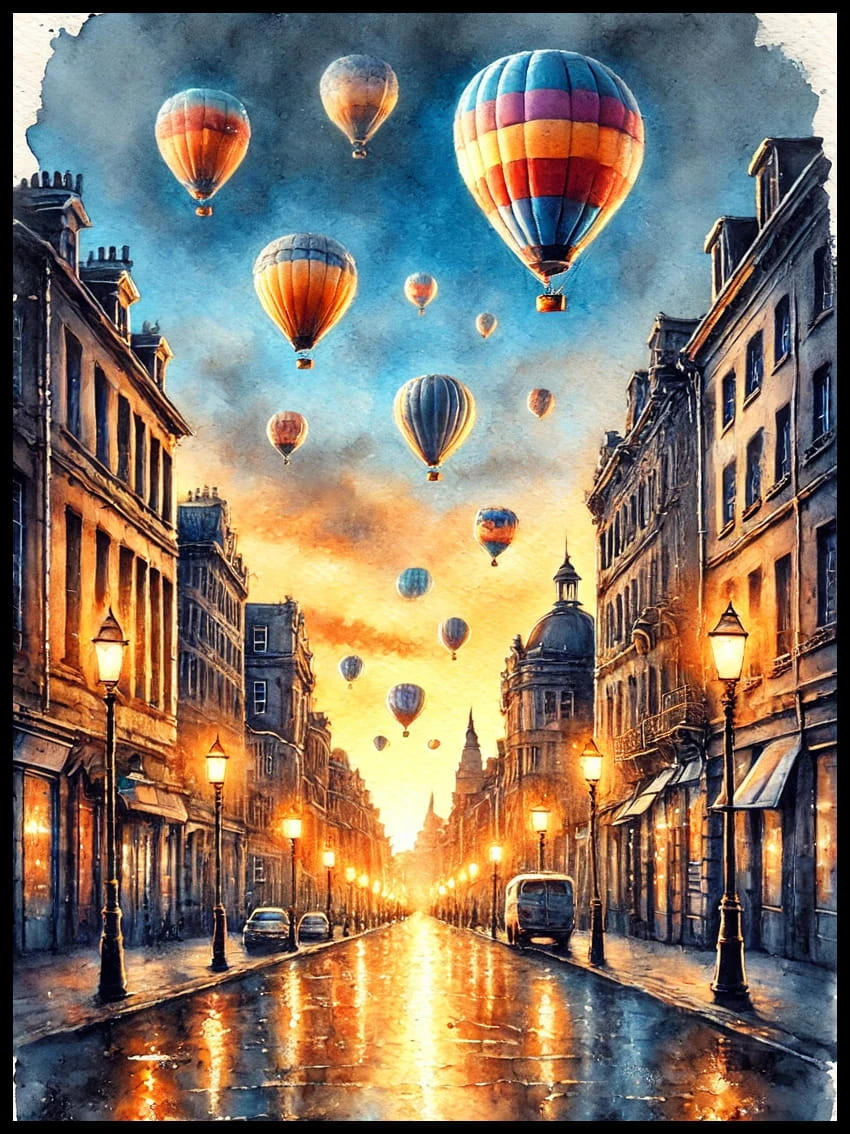 Odkryj niesamowitą przygodę i poczuj dreszczyk emocji z naszym plakatem "Balony nad miastem", dostępnym w sklepie internetowym 4rooms.