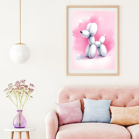 Zaprojektowany przez 4rooms, ten wyjątkowy plakat autorski jest idealnym dodatkiem do każdego wnętrza, które pragnie odrobiny lekkości i koloru. Niezależnie od tego, czy umieścisz go w salonie, sypialni, pokoju dziecka czy nowoczesnym biurze, "Baloon Dog" wniesie do przestrzeni energię i pozytywne wibracje.