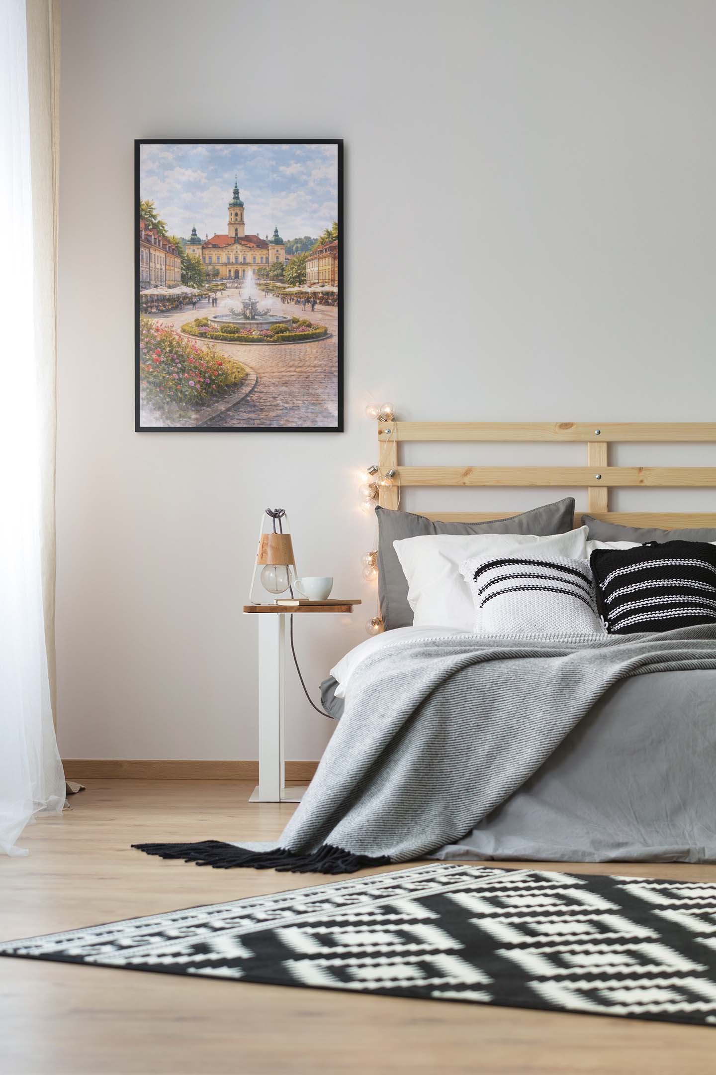 Odkryj urok Białegostoku, miasta pełnego kontrastów i barw, uchwyconego w niezwykle subtelnej i poetyckiej formie na ekskluzywnym plakacie autorskim dostępnym jedynie w sklepie internetowym 4rooms.