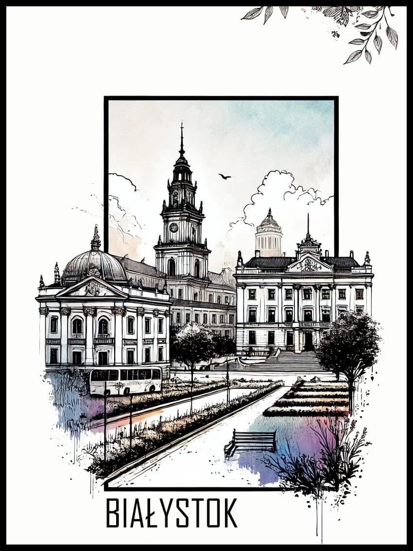 Odkryj urok Białegostoku, miasta pełnego kontrastów i barw, uchwyconego w niezwykle subtelnej i poetyckiej formie na ekskluzywnym plakacie autorskim dostępnym jedynie w sklepie internetowym 4rooms.