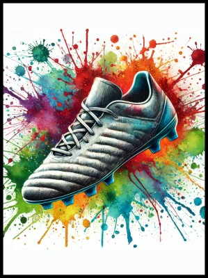 Ten dynamiczny plakat przedstawiający kolorowy but do piłki nożnej to prawdziwa gratka dla fanów sportu i nowoczesnego designu!