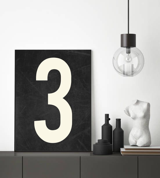 Nowoczesny plakat na ścianę w formie cyfry 3. To fajny pomysł na personalizację Twojego pomieszczenia.