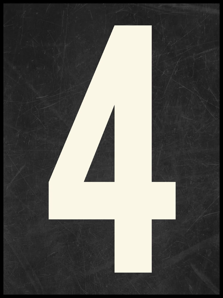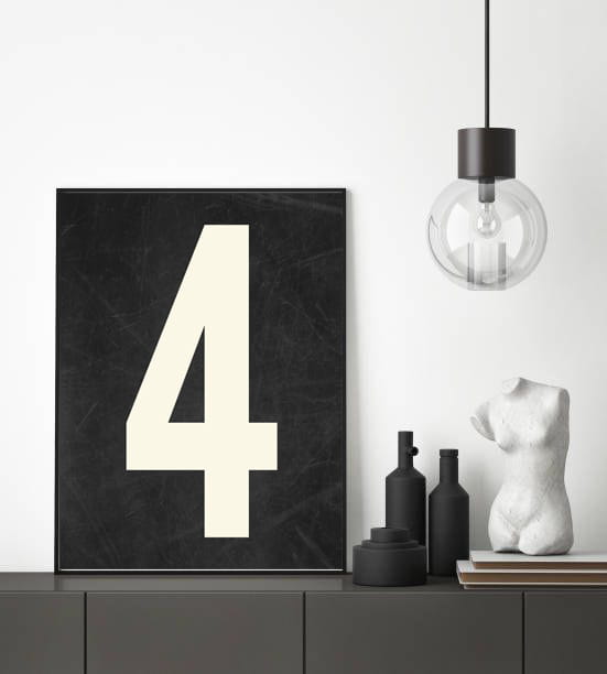 Nowoczesny plakat na ścianę w formie cyfry 4. To fajny pomysł na personalizację Twojego pomieszczenia.