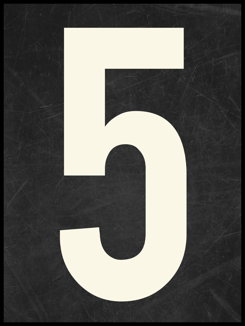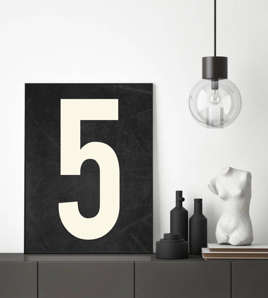 Nowoczesny plakat na ścianę w formie cyfry 5. To fajny pomysł na personalizację Twojego pomieszczenia.