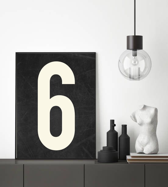 Nowoczesny plakat na ścianę w formie cyfry 6. To fajny pomysł na personalizację Twojego pomieszczenia.