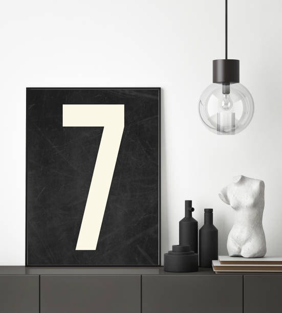 Nowoczesny plakat na ścianę w formie cyfry 7. To fajny pomysł na personalizację Twojego pomieszczenia.