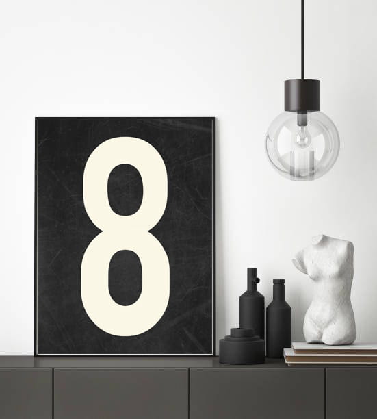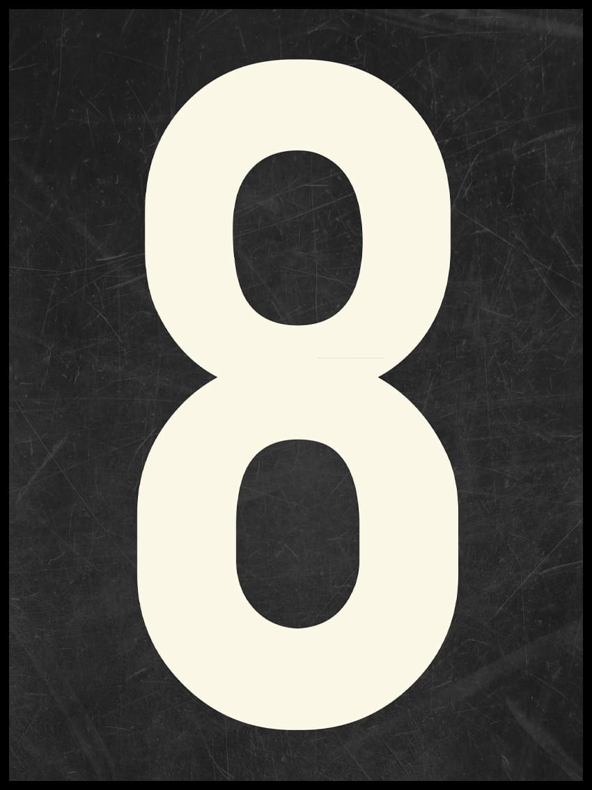 Nowoczesny plakat na ścianę w formie cyfry 8. To fajny pomysł na personalizację Twojego pomieszczenia.