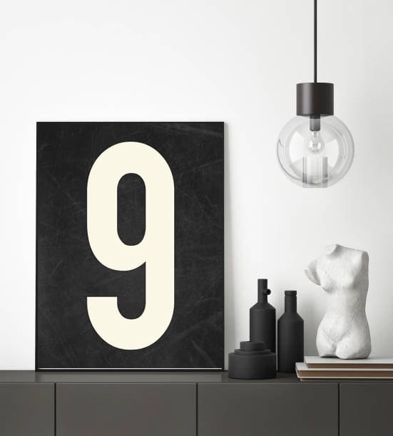 Nowoczesny plakat na ścianę w formie cyfry 9. To fajny pomysł na personalizację Twojego pomieszczenia.