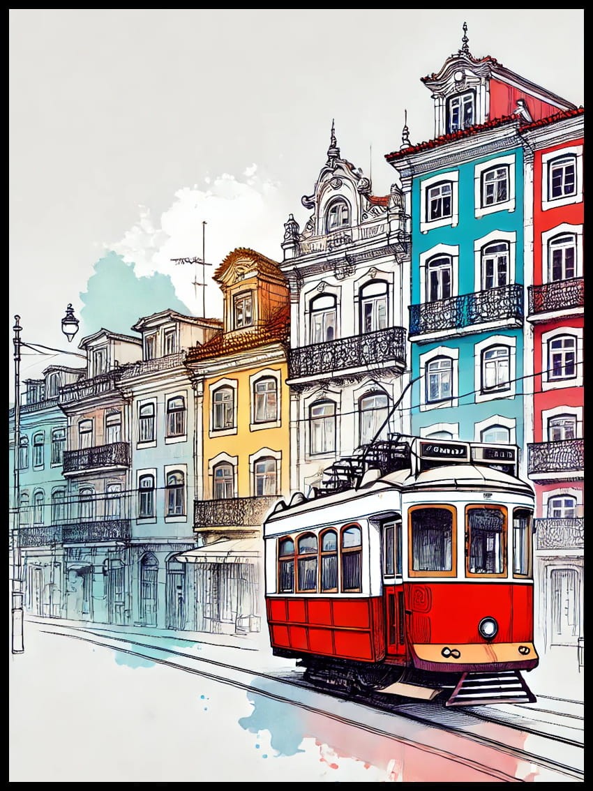 Plakat, Czerwony tramwaj w Portugalii