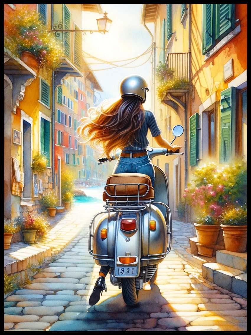 Plakat, Dziewczyna na Vespie - akwarela