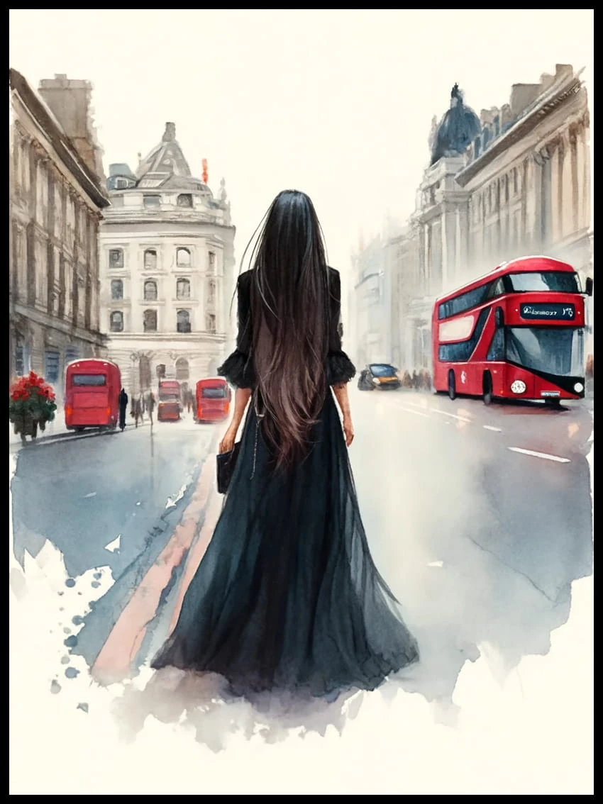 Plakat, Dziewczyna na ulicy Londynu - akwarela