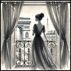 Plakat "Dziewczyna w paryskim oknie - akwarela"