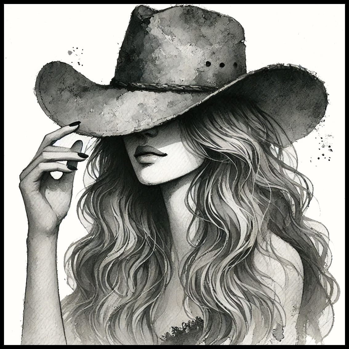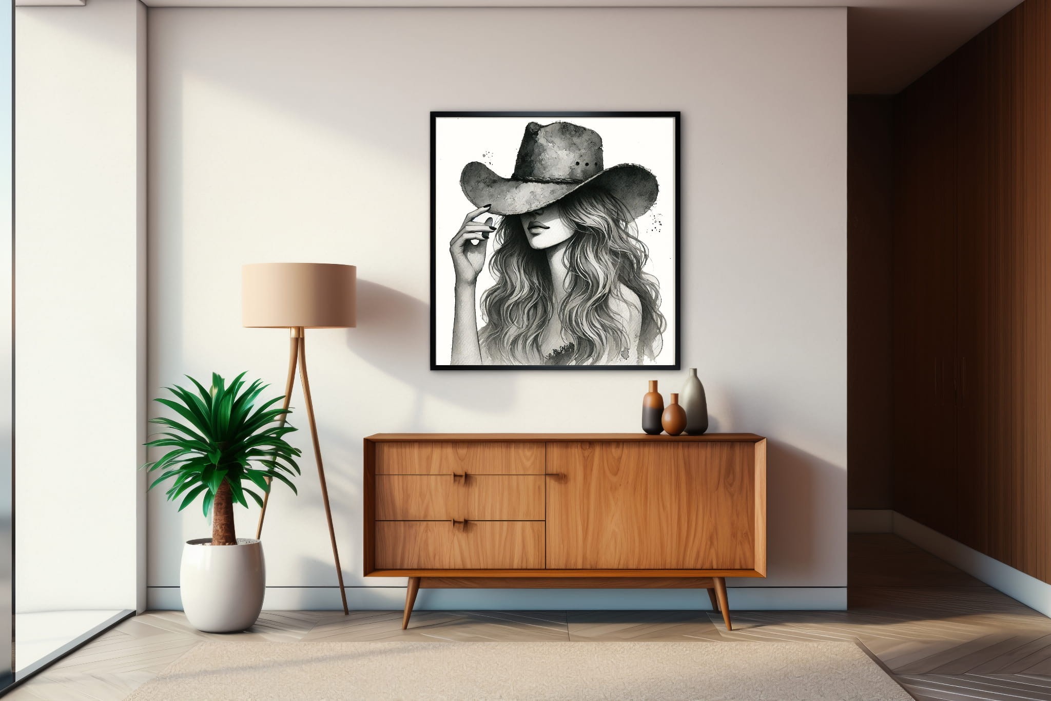 Przenieś do swojego wnętrza atmosferę ciszy i refleksji z plakatem autorskim 4rooms "Dziewczyna w czarnym kapeluszu", wykonanym w technice akwareli.