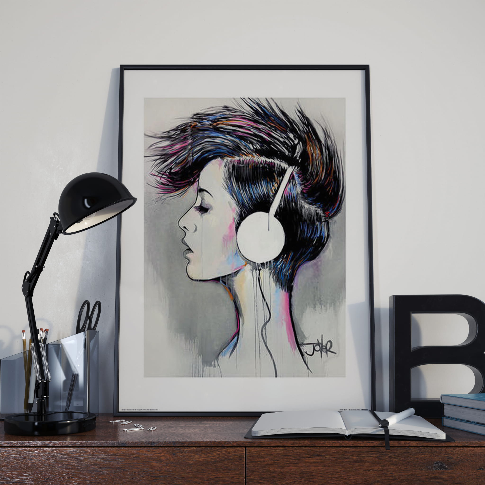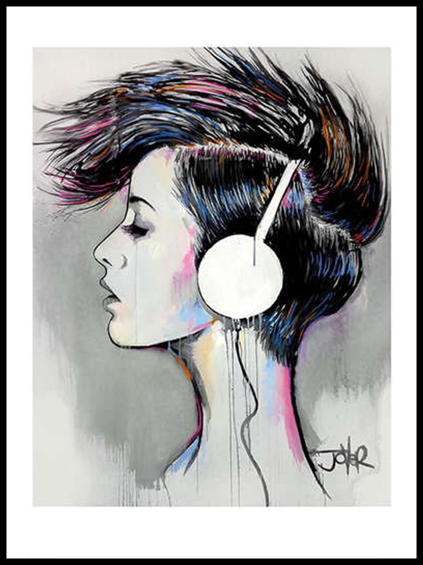 Popularny plakat na ścianę –Dziewczyna w słuchawkach- nada charakter Twojemu wnętrzu.