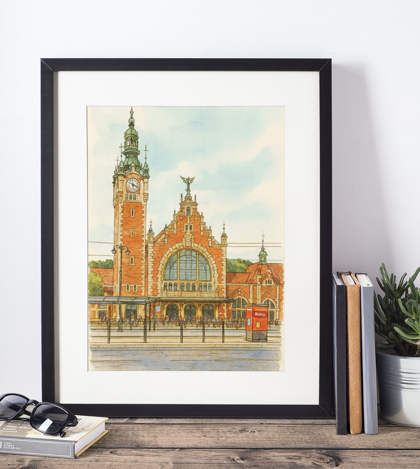 Plakat, Gdańsk Dworzec główny akwarela