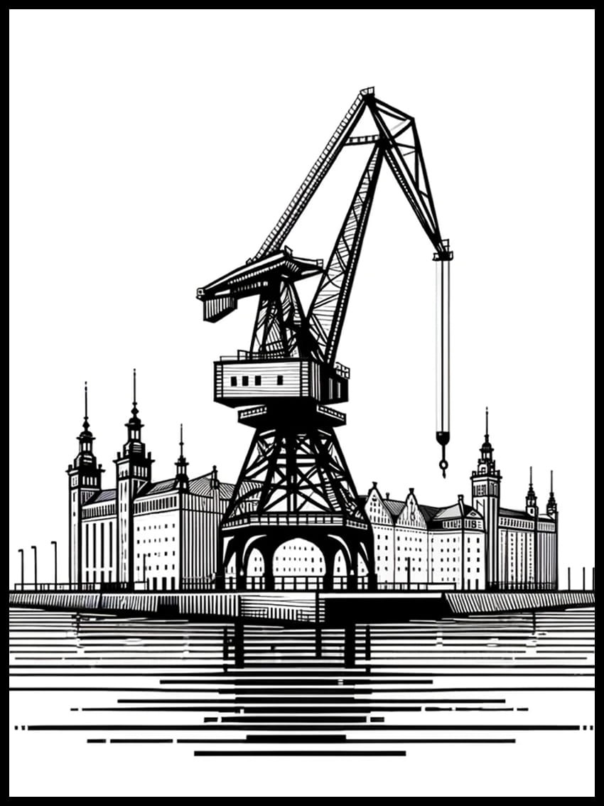 Plakat cechuje się wyrafinowaną paletą barw i realistycznym przedstawieniem, podkreślając zarówno inżynieryjne mistrzostwo, jak i historyczną wartość tych ikonicznych konstrukcji. Idealny dla miłośników historii, architektury oraz morskich tradycji, ten plakat doskonale wkomponuje się w każde wnętrze, dodając mu unikalnego, gdańskiego charakteru.