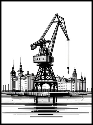 Przenieś się w czasie z naszym wyjątkowym plakatem przedstawiającym historyczne dźwigi Gdańska.